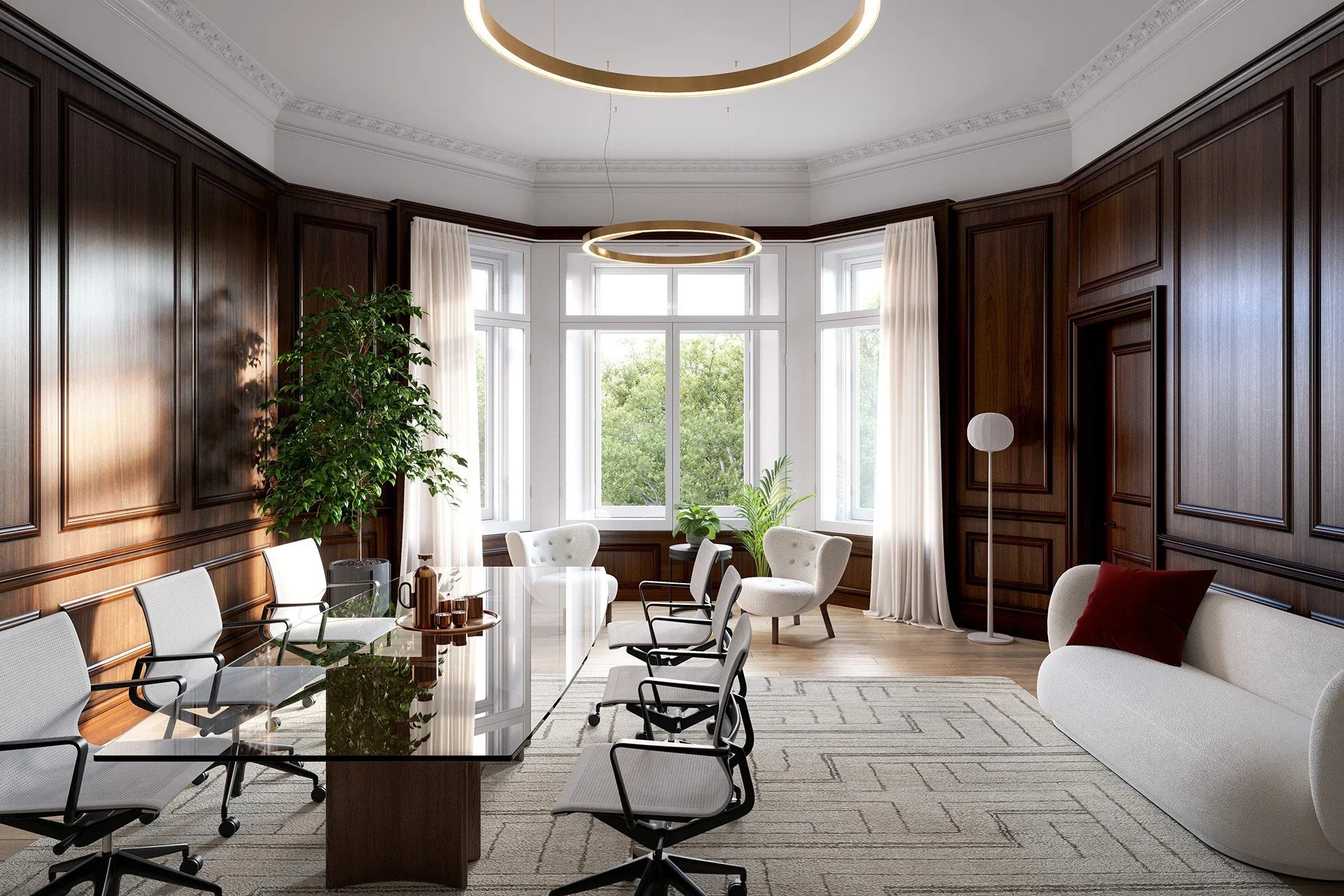 Figure 4: Our proposals to restore the timber panelling in the street facing formal conference room at Grosvenor Place, had just been granted Listed Building Consent. Source: 4SA