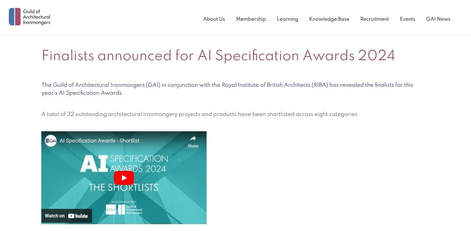 100 Pall Mall has been shortlisted for the Public and Commercial category, which is sponsored by ASSA Abloy. If you visit the AI Specification Awards 2024, you will be able to see the video, including of our shortlisted entry.