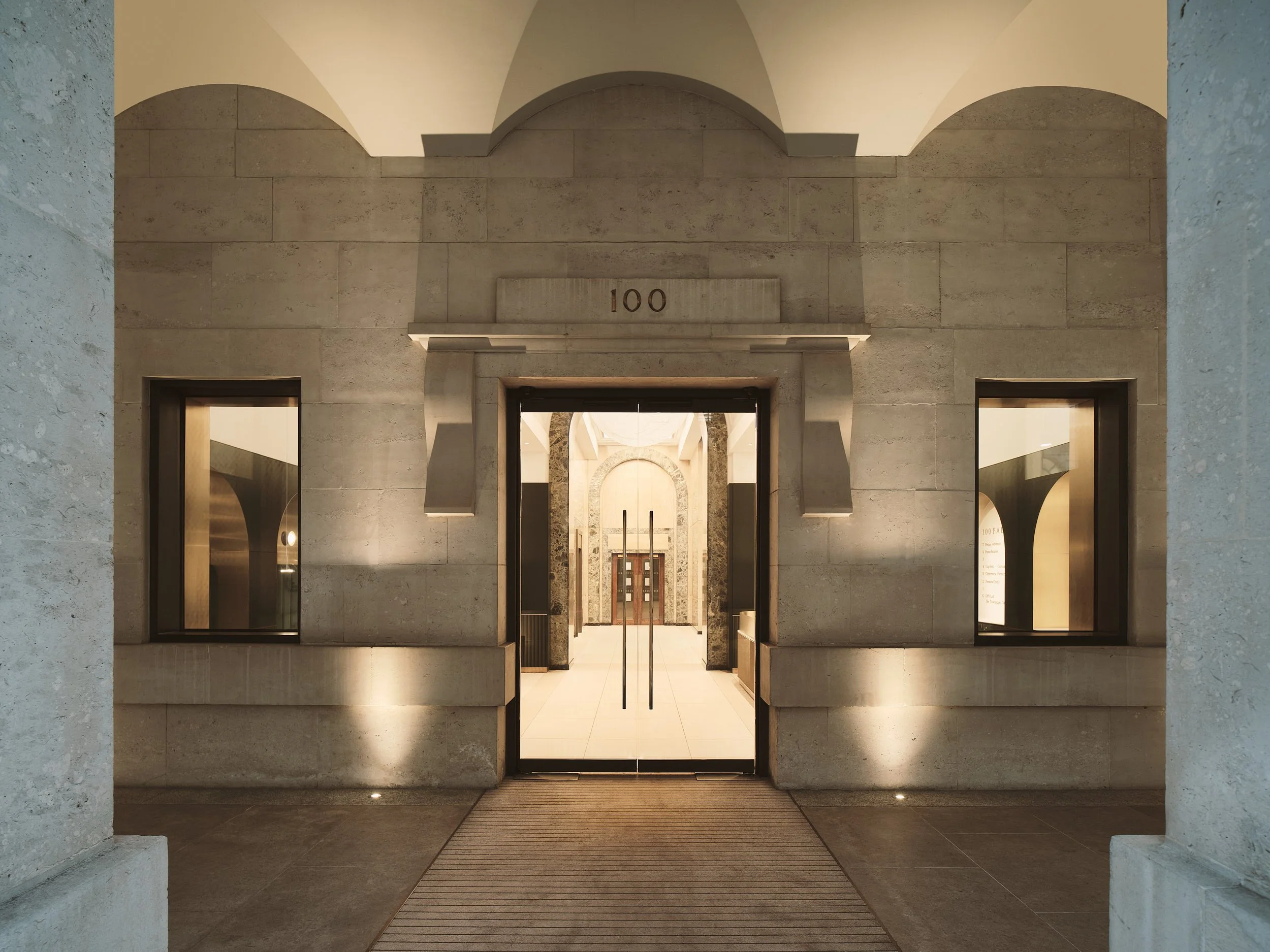 Within this Grade II listed McMorran & Whitby ‘Stripped Classicism’ landmark in Central London, sits a carefully refurbished contemporary office space. The new insertions have been elegantly informed by the building’s historic fabric including terrazzo, brass detailing and green marble.